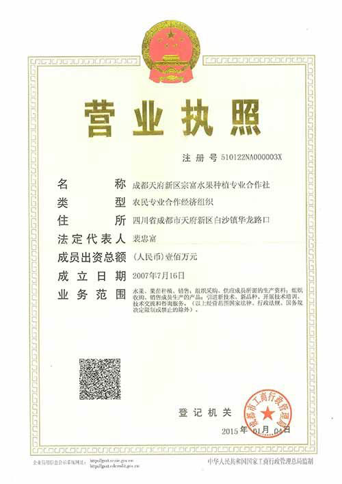 ? ? ? ? ? ? ? 單位名稱:成都天府新區宗富水果種植專業合作社